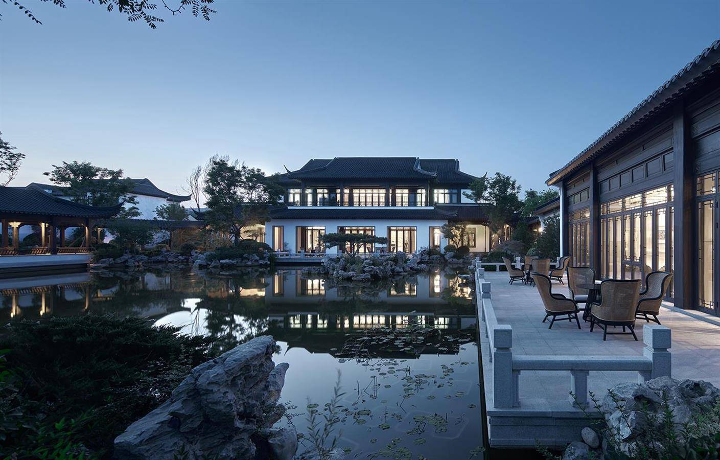 在日益西化的生活方式与生活节奏下,中国传统的居住理念,重拾对场地的人文关怀、再现对空间的美学诉求,人们凝聚于此,念兹在兹。这里既有精神生活的从容余裕,也有情感生活的亲密丰沛。“天人合一”的东方哲学孕育了中式居住的建筑规制与布局形态,开启人与自然、人与人以及人与精神世界的思考。